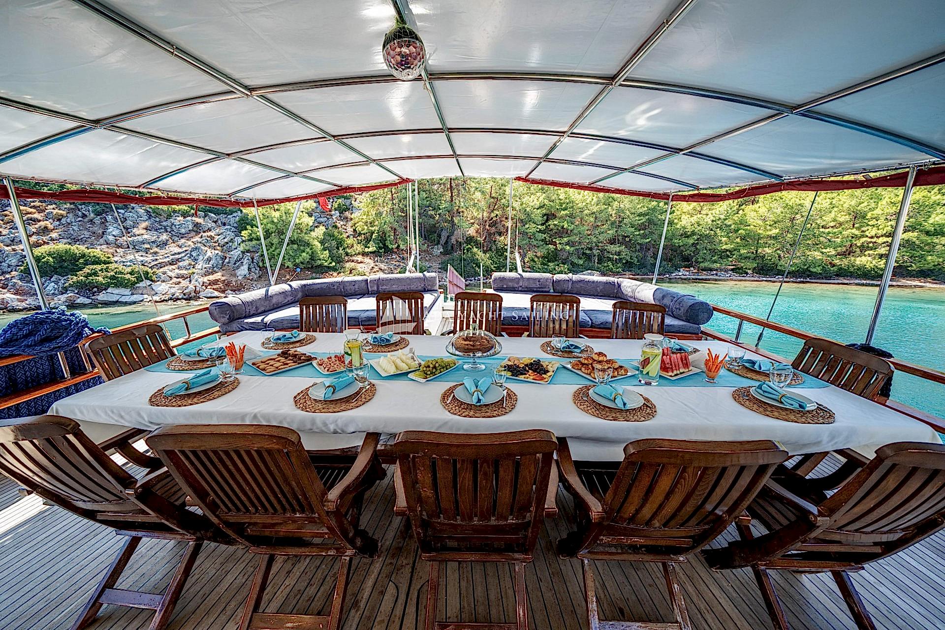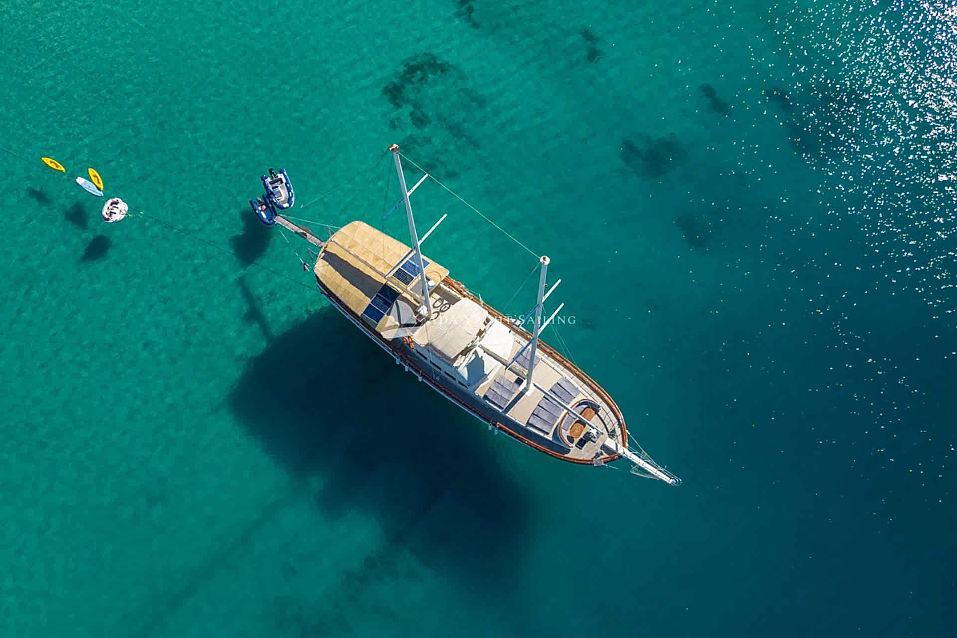Ege’yi Akdeniz ile birleştiren Marmaris, özellikle yaz aylarında ziyaretçi akınına uğruyor. Bunun en büyük sebeplerinden biri de hiçbir yerde eşi benzeri olmayan muhteşem koyları. Mavinin her tonuna tanıklık edebileceğiniz birbirinden güzel koylar, doğayla iç içe bir tatil deneyimi yaşamak isteyenler için vazgeçilmez bir lokasyondur.Paşalı gulet , Marmaris Bozburun limandan kalkışla marmaris hisarönü koylarında sizlere hizmet vermektedir.Deluxe gulet sınıfında bir gulet olup 2 adet master ,2 adet double ve 2 adet twin kabin mimarisine sahiptir.Her kabinin kendisine ait olmakla beraber toplamda 6 adet banyo tuvalet mevcuttur.Paşalı gulet , 25 metre boya ve 7,40 metre ene sahiptir.Toplamda 12 misafir kapasitesine sahiptir.Marmaris Bozburun limandan hareket eden ve selimiye,bozburun,orhaniye,söğüt,marmaris koylarında seyir yapıp demirleyen teknemiz 4 adet personeli ile hizmet vermektedir. Teknemize giriş saati 15:00 olup çıkış saatleriniz son gecenizin ertesi sabahı 10:00 dır.Teknemizde Klima,tv,wifi,müzik ses sistemi,kano,jeneratör,su sporları gibi donanımlar mevcutdur.Yiyecek içecek alışverişinizi isterseniz kendiniz yapabilir yada tekne aşçımız ile görüşerek listeniz belirledikten sonra tekne ekibimiz sizin adınıza temin edebilir.